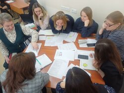 Участникам мероприятия, как фрагмент заседания педагогического совета, была предложена работа в группах по созданию модели урока с эффективной реализацией воспитательного потенциала. Каждой группе было предложено задание по проектированию отдельного этапа урока, представление результатов практической работы было эмоционально ярким.