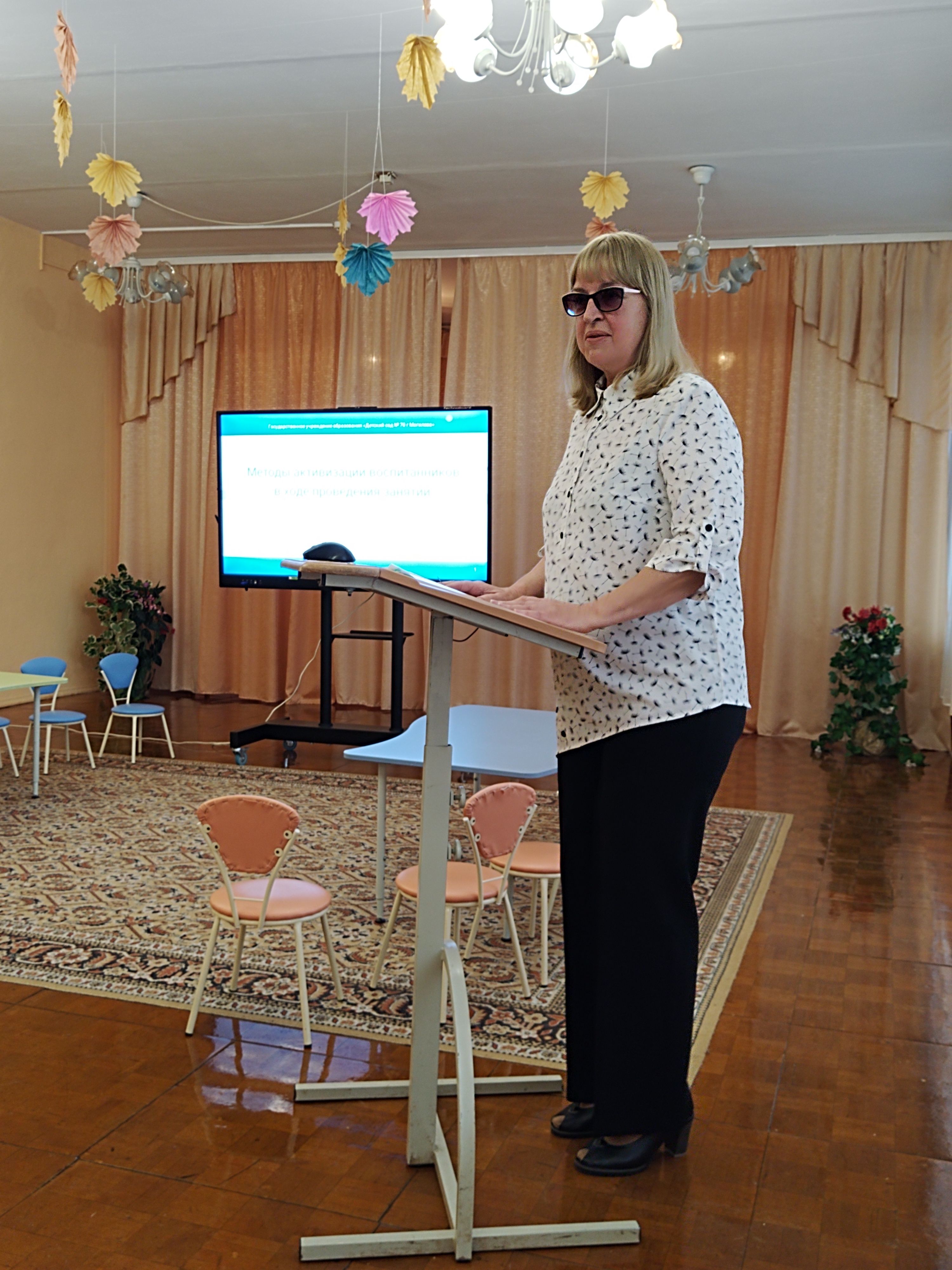 Предметом обсуждения на заседании являлись вопросы, касающиеся организации и проведения занятий как основной формы образовательного процесса. Румянцева И.М., заместитель заведующего государственного учреждения образования «Детский сад № 70 г. Могилева», остановилась на этапах подготовки и проведения занятий с воспитанниками. Методы и приемы, направленные на повышение активности воспитанников во время занятий, были представлены воспитателем дошкольного образования Мельниковой В.В. Применить полученные теоретические знания молодые педагоги смогли при анализе занятия в первой младшей группе на тему «Кукла Маша в гостях у детей».