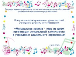 С целью совершенствования профессиональной компетентности музыкальных руководителей учреждений дошкольного образования по вопросам организации и проведения занятий по образовательной области «Музыкальное искусство» учебной программы дошкольного образования, обеспечение качества образовательного процесса на базе государственного учреждения образования «Детский сад № 112 г. Могилева» 23 октября 2025 года состоялась консультация для музыкальных руководителей со стажем работы в должности до 2-х лет.