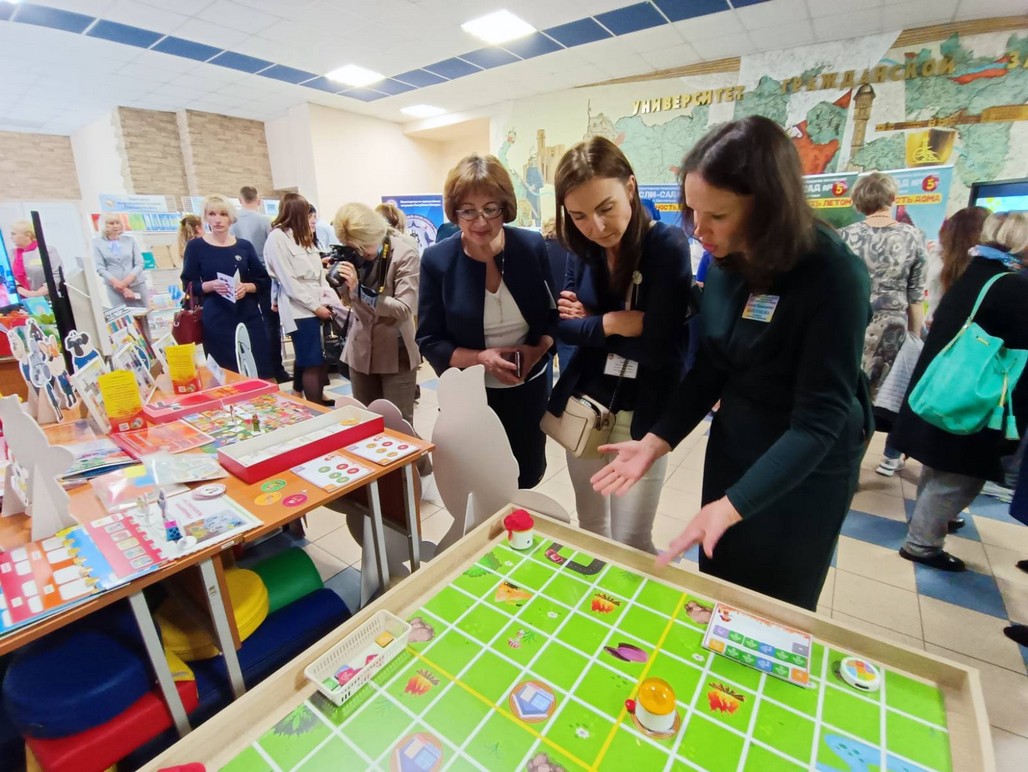 Заместитель заведующего по основной деятельности Загорская И.Л., воспитатели дошкольного образования Блинкова Т.Б. и Каплунова А.В. презентовали выставку методических разработок с использованием современных технологий: интерактивный квест «Спецотряд 112 спешит на помощь!», дидактическая игра «Служба спасения с элементами программирования», «Уголок безопасности», видеоролик «Гордимся, что научили» и театрализованное представление воспитанников «Уроки безопасности для Незнайки».