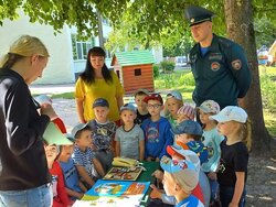 Инспектор СПиВО МГОЧС Котляров В.А. провел с детьми профилактическую беседу, целью которой являлось напоминание детям об основах безопасности жизнедеятельности в летний период, о соблюдение правил безопасного купания и о том, как переносить жару.