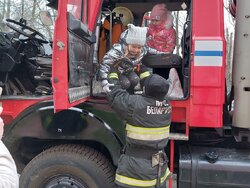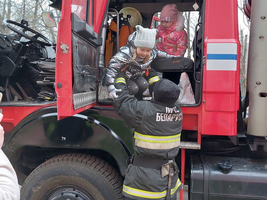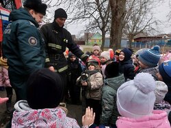 Сюрпризом для малышей был приезд в учреждение сотрудников МЧС. Спасатели рассказали детям о профессии спасателя-пожарного, о правилах поведения при обнаружении очага возгорания. Ребята имели возможность примерить каску пожарного, подержать пожарный рукав, а также посидеть в кабине пожарной машины.