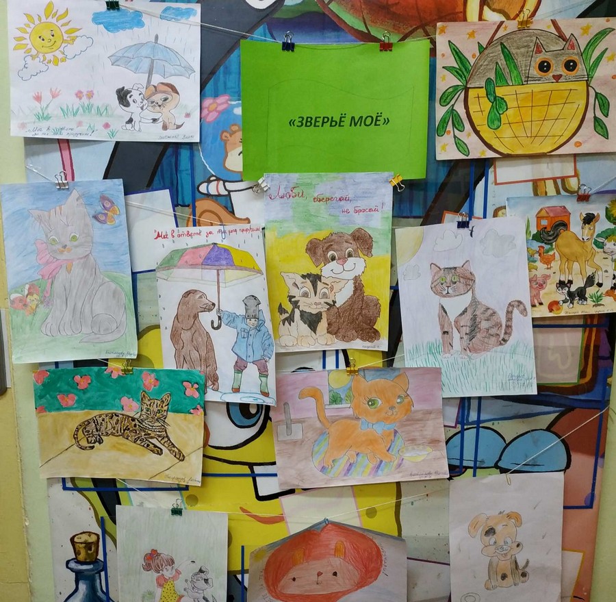 Заключительным этапом акции стал конкурс рисунков и плакатов «Зверьё моё», в котором приняли активное участие дети вместе с родителями. Работы получились очень интересные и творческие. Была организована выставка рисунков.
