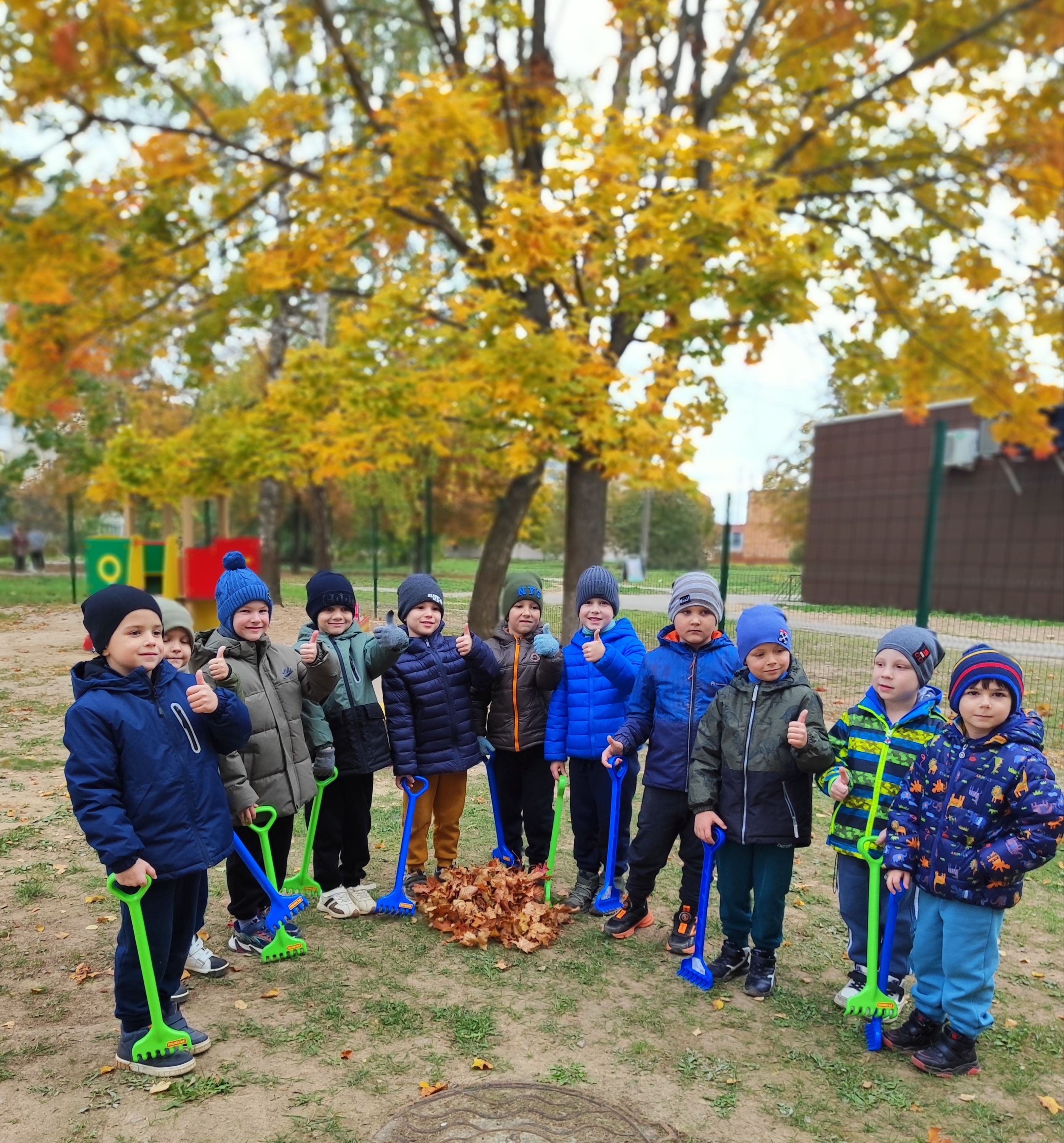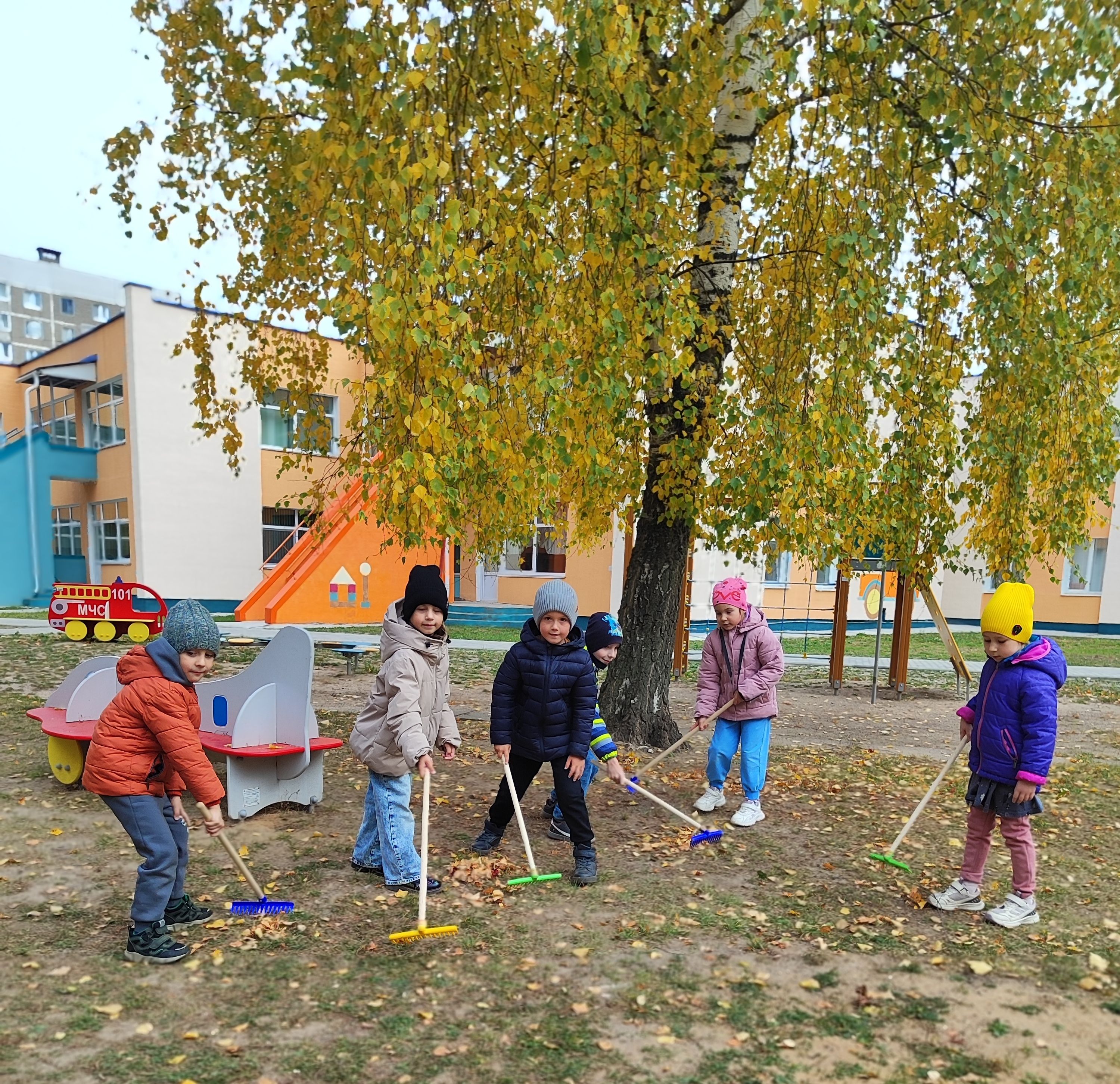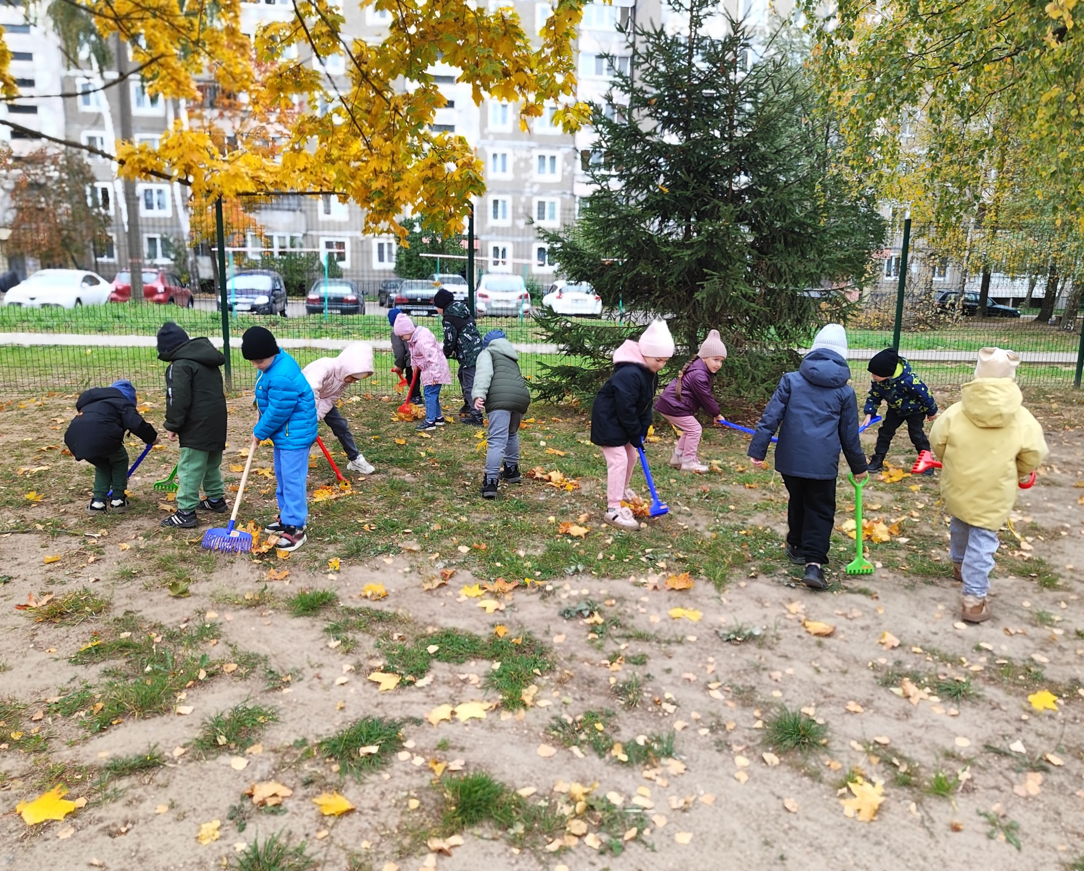В государственном учреждении образования «Детский сад № 38 г. Могилева» воспитанники старших групп совместно с воспитателями дошкольного образования с огромным воодушевлением и энтузиазмом помогали дворнику наводить порядок на своих игровых участках: собирали листья в кучи, подметали веранды и дорожки, складывали листву в корзины. Благодаря этому ребята почувствовали себя сильными и самостоятельными, как взрослые.